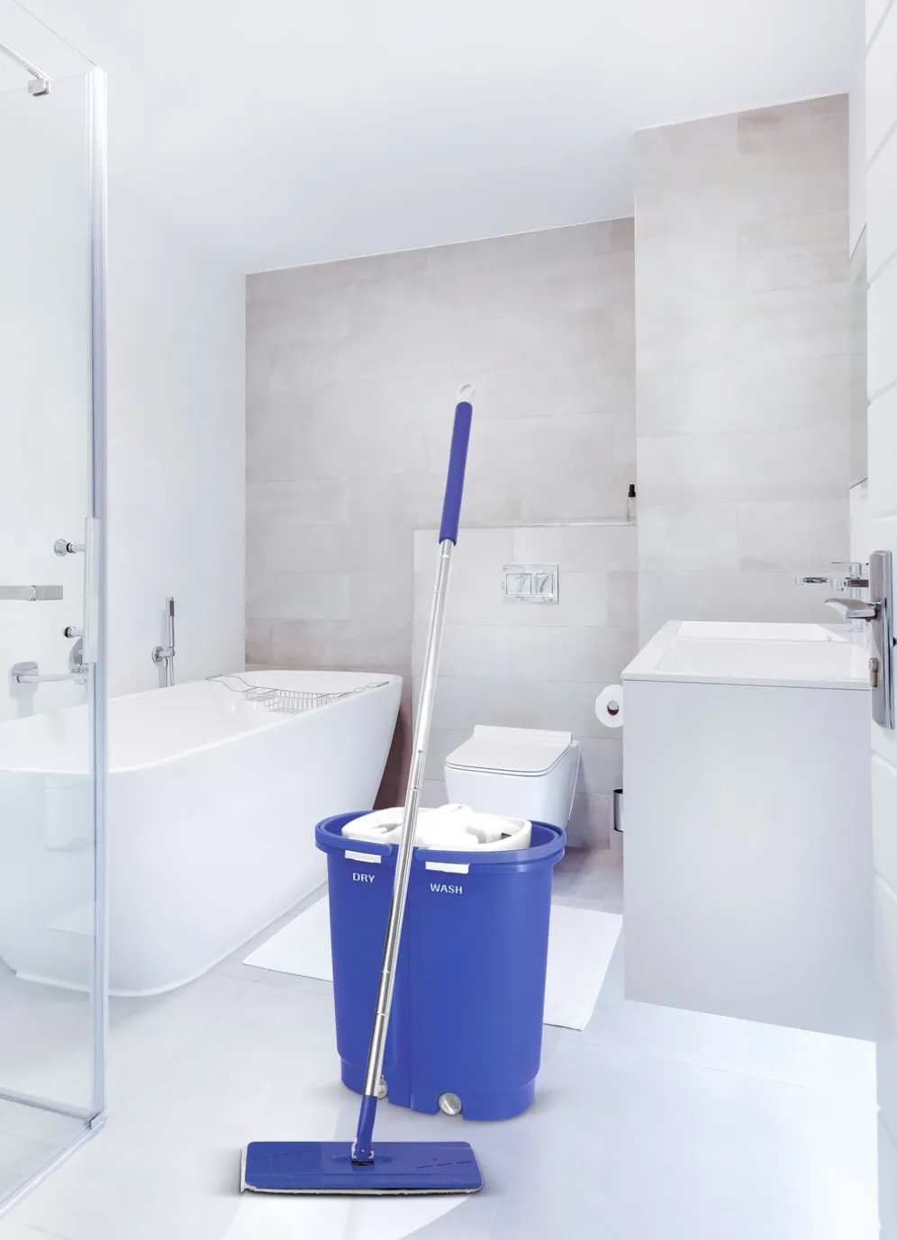 - Während ein gewöhnlicher Wischmopp den Schmutz lediglich auf dem Boden verteilt, wird er mit dem Bodenwisch-System aufgenommen und im Eimer eingeschlossen. Das Auswringen, Befeuchten und Trocknen des Tuchs erfolgt komfortabel ohne Bücken. Durch die spezielle Trocknungsfunktion ist das Tuch des Wischmopps im Handumdrehen trocken und nimmt die Restfeuchtigkeit auf dem Boden wieder auf. Frisch geputzte Böden sind direkt wieder betretbar.