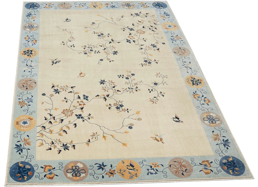 Brücken und Teppiche mit Blumen- und Rankenmotiven in Größe 100 (50x 80 cm) und in Beige-Hellblau.