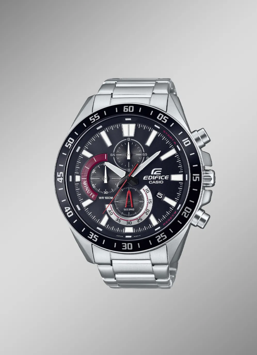 Angetrieben von einem zuverlässigen Quarzwerk, ist die Casio Edifice Herrenuhr ein Synonym für Pünktlichkeit und Zuverlässigkeit. Setzen Sie ein Zeichen mit einer Uhr, die nicht nur die Zeit misst, sondern auch Ihren Stil definiert.