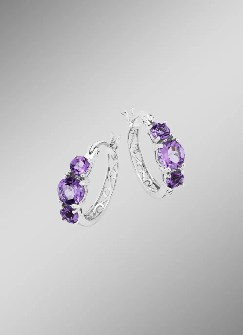 Creolen mit echt Amethyst in der Legierung Silber 925/- fein.
