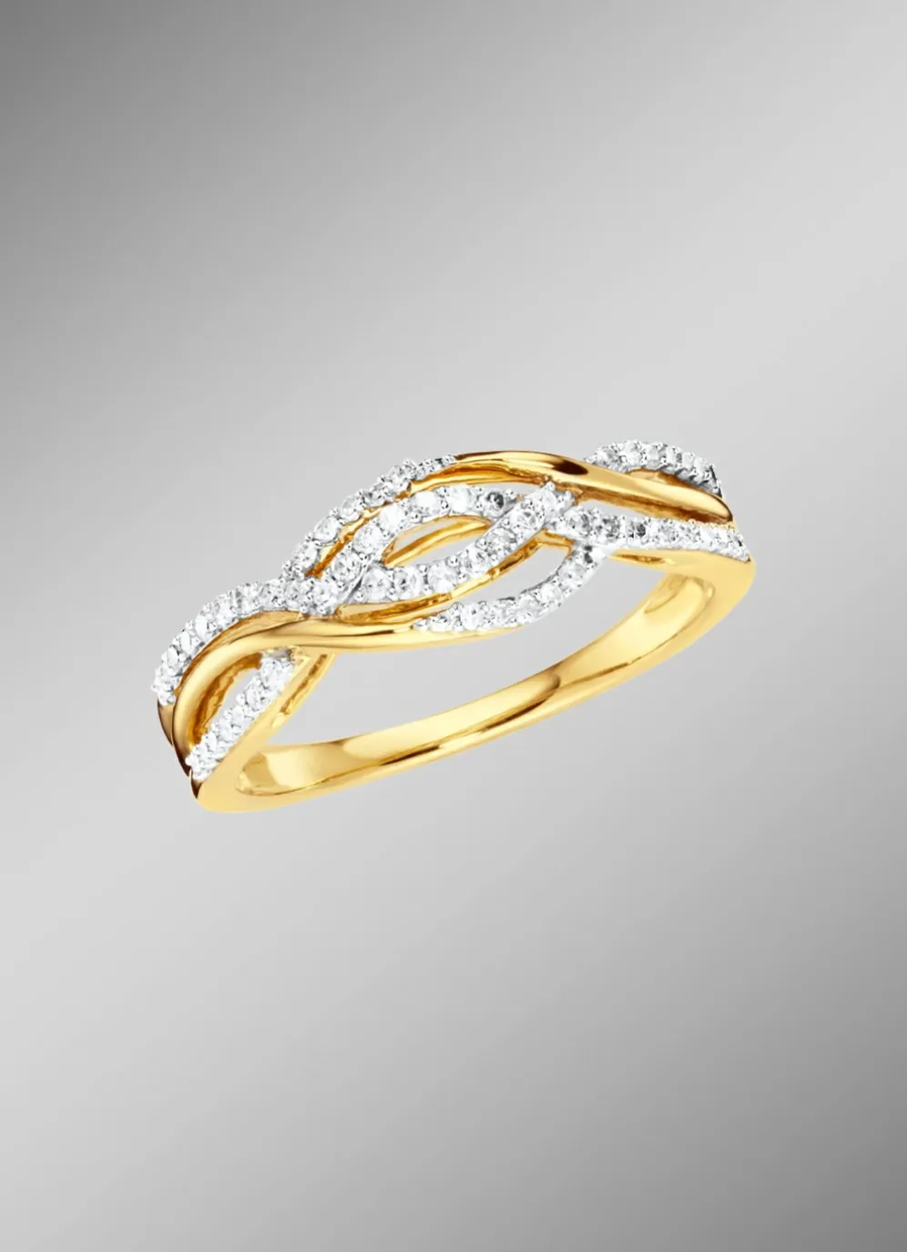 Damenring mit 56 Brillanten in der Legierung Gold 585/- fein und in Größe 210.