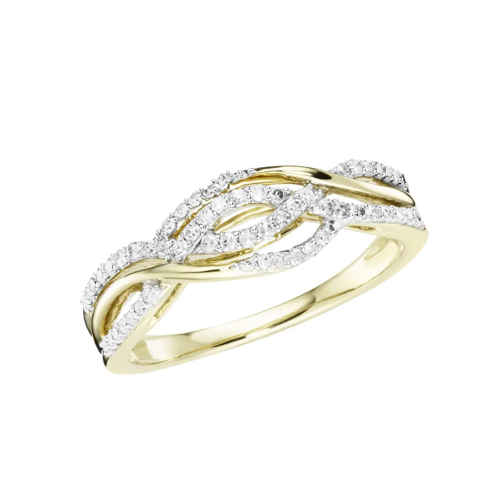 Dieser Damenring ist aus Gold 585/- fein gefertigt. Durch die 56 Brillanten, zusammen ca. 0,24 ct., in Weiß, Piqué 2, entsteht ein Funkeln, das verzaubert. Der Ringkopf ist 6 mm breit.
