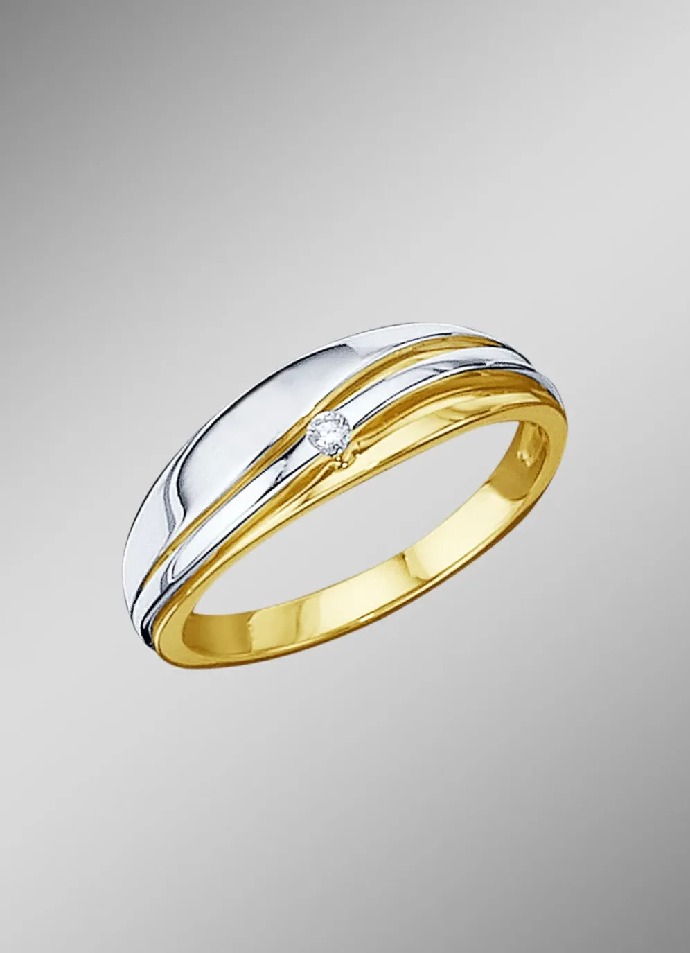 Kostbares Gelb- und Weißgold in 585/-fein oder Gelb- und Weißgold 333/- fein ist von bleibendem Wert und verleiht diesem Damenring in Bicolor einen warmen Glanz. Ein funkelnder Brillant, Weiß, Piqué 2, rundet die hochwertige Kreation mit intensiver Strahlkraft ab. Die Ringkopfbreite beträgt 6 mm.