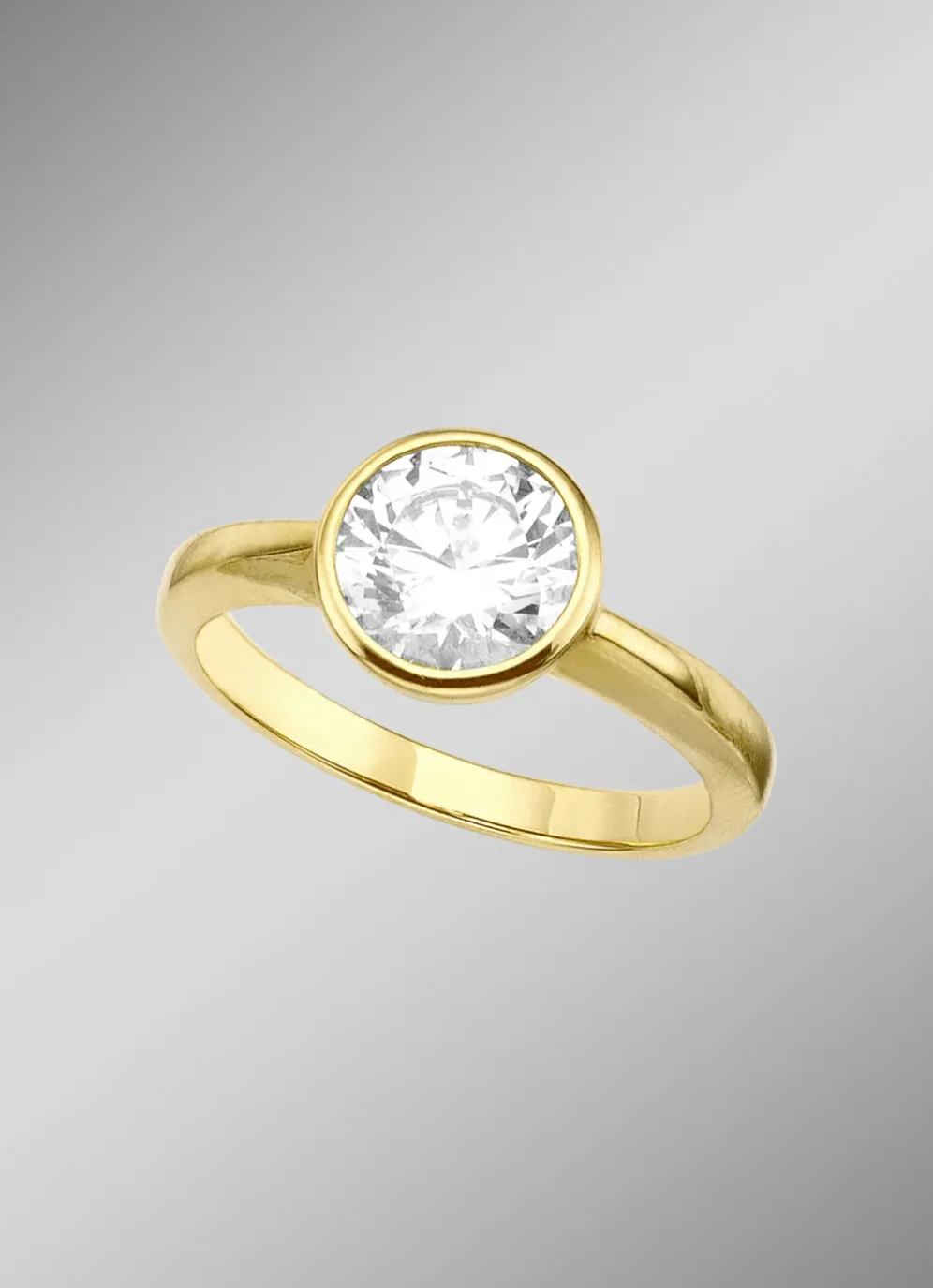 Moderne Geradlinigkeit, schickes Design und eine detailverliebte Fertigung von höchster Qualität lassen dieses Schmuckstück für sich sprechen. Zeitloser Damenring in massiver Zargenfassung eingearbeiteter synth. Zirkonia, ca. 2,00 ct., machen den 9 mm großen Ringkopf zum strahlenden Highlight. Die erhabene Einfassung aus Gold 375/- fein setzt dieses Accessoires ideal in Szene. Die einzigartige Vereinigung von dauerhafter Wertigkeit und modischem Desing mit eindrucksvollem Farbkontrast aus getöntem Weiß und gelbem Goldglanz machen den unwiederstehlichen Charme des Rings aus.