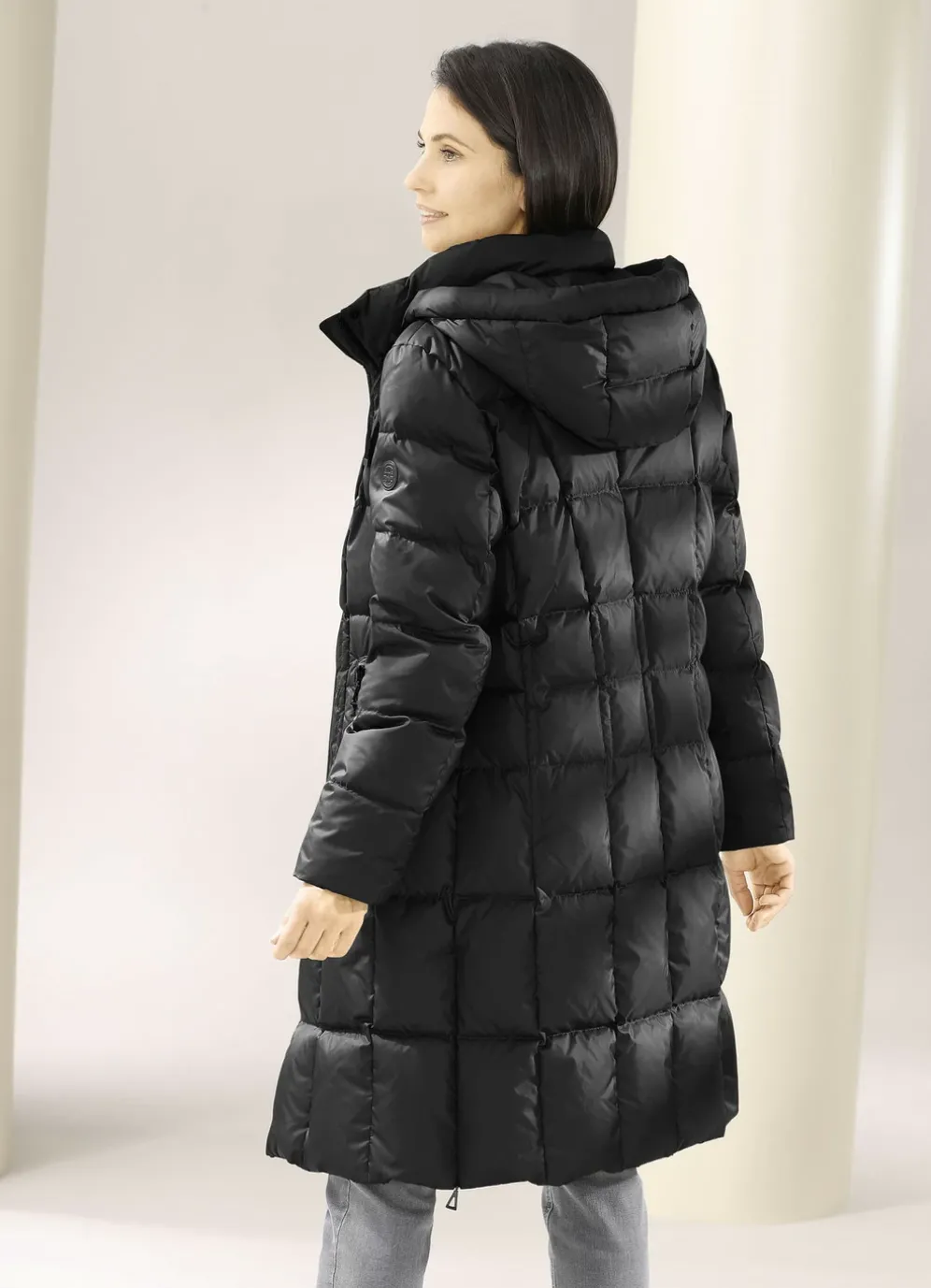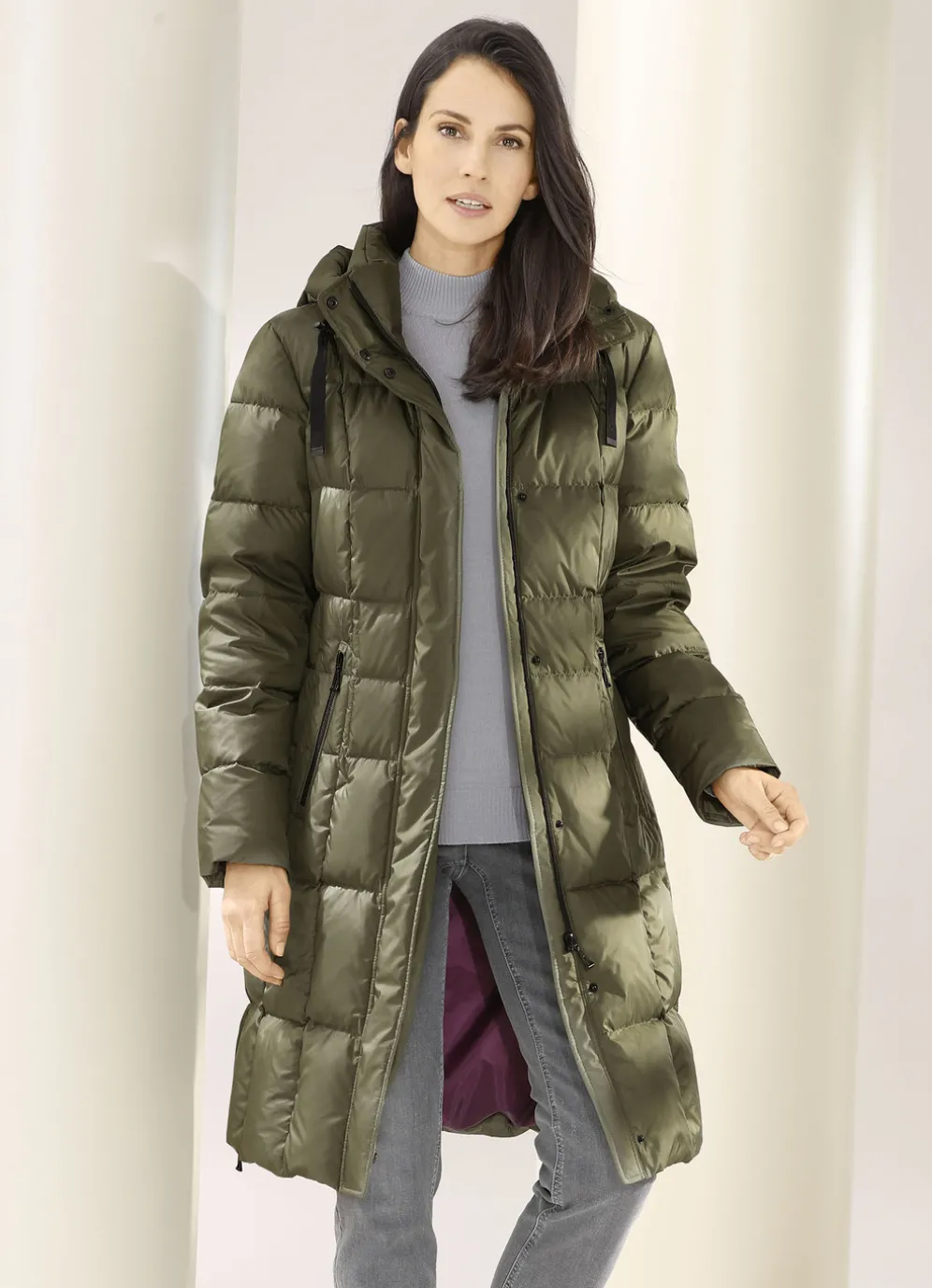 Lassen Sie sich dieses Modell nicht entgehen! Charmanter Daunen-Kurzmantel: abnehmbare Kapuze mit Durchzugsband und Stopper, Stehkragen mit Druckern, Reißverschluss unter der verdeckten Druckerleiste, Reißverschluss an Taschen und Seitenschlitzen, umschlagbare Ärmel sowie eine Innentasche. Länge ca. 98 cm.