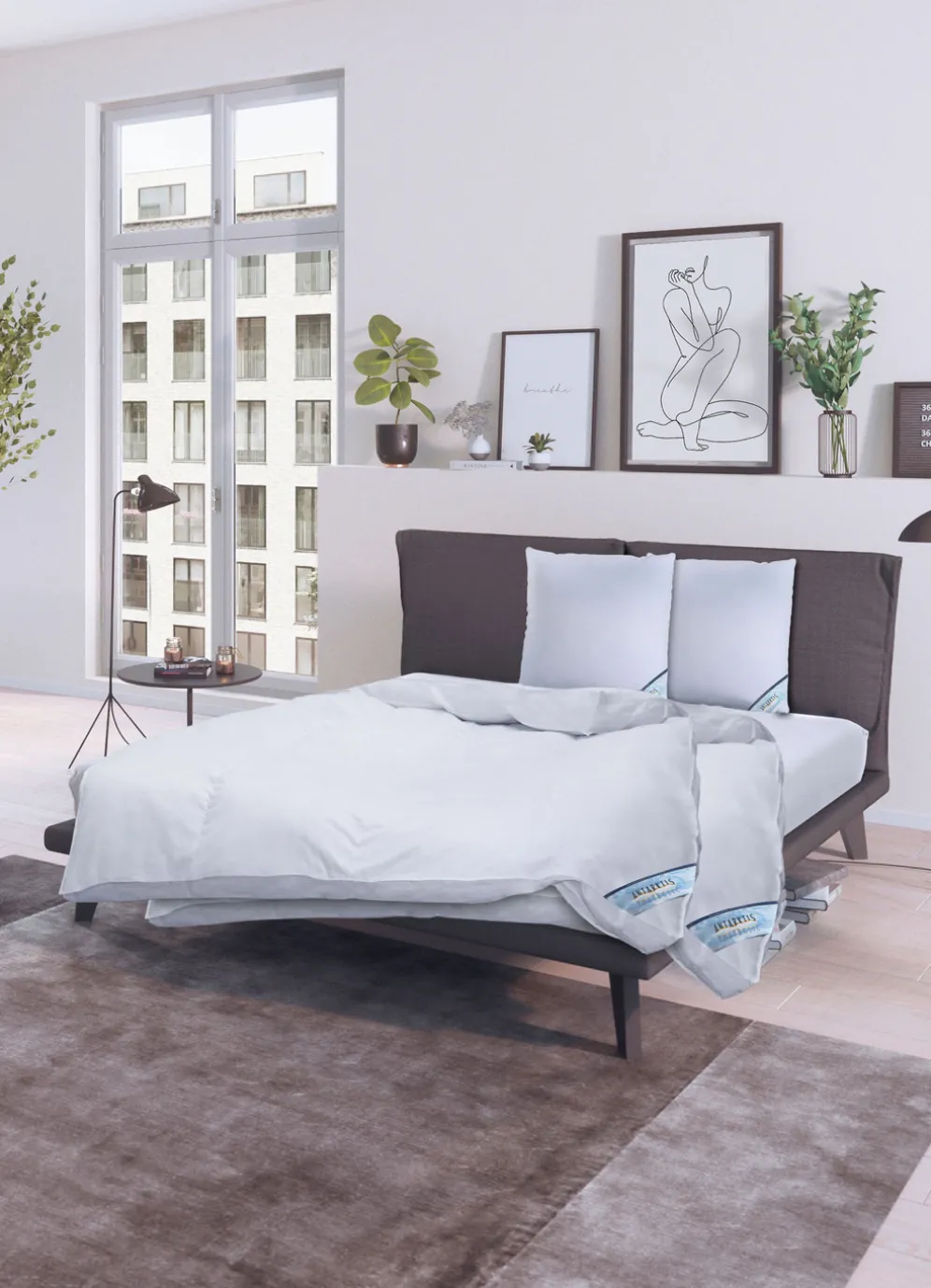 Erfüllt als reines Naturprodukt den Qualitätsanspruch für ein angenehm trockenes und behagliches Schlafklima. Kein Verrutschen der Füllung durch aufwendige Steppung. Zertifiziert mit NOMITE – natürlicher Schutz für Hausstauballergiker und Asthmatiker.