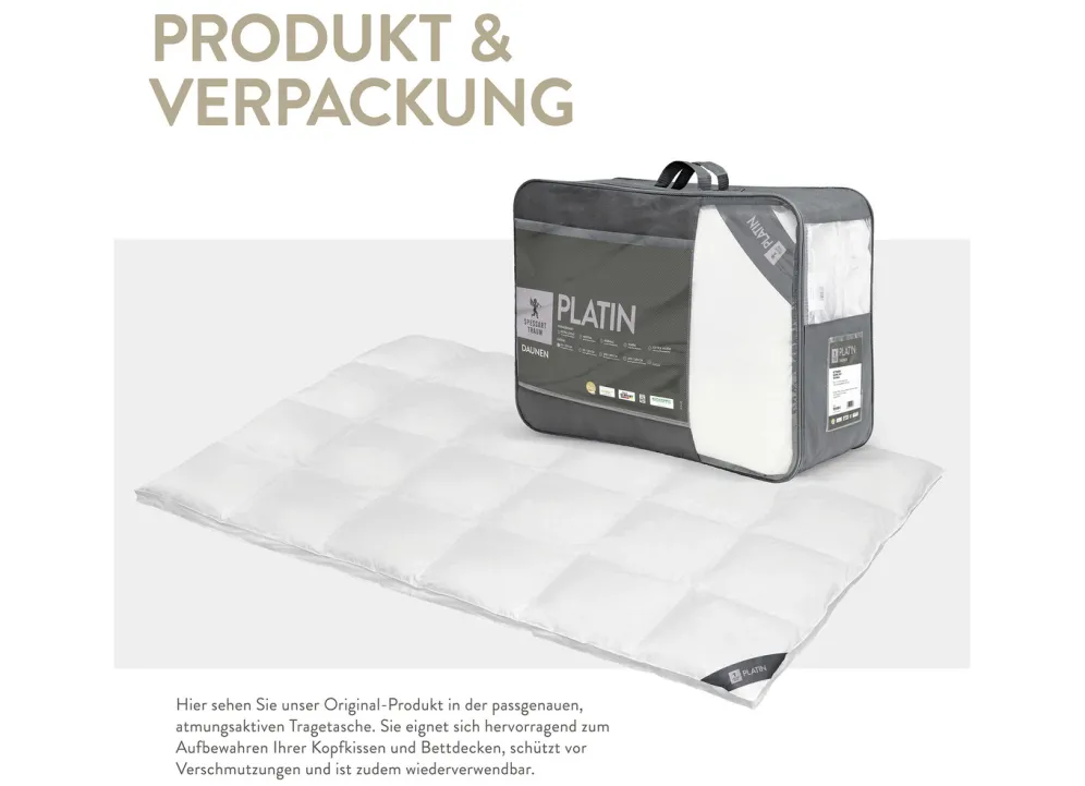 Daunenprogramm Platin von Spessarttraum in der Ausführung EXTRA LEICHT und in Größe 103 (135/200 cm).