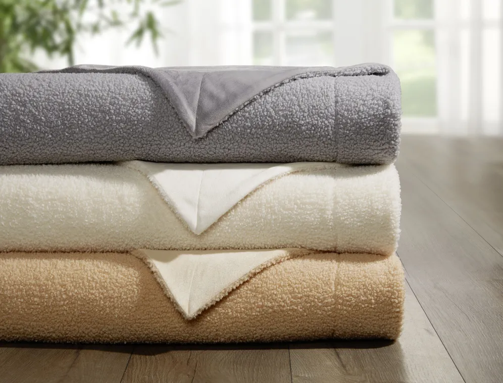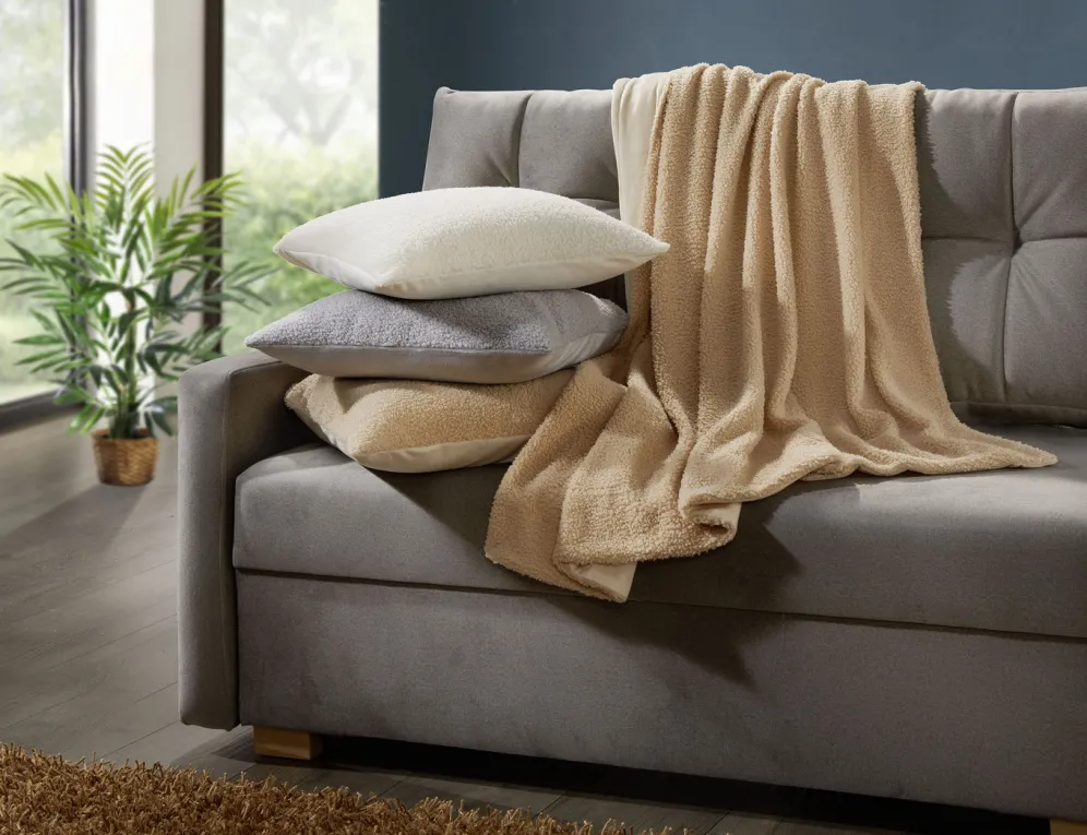 Decken und Kissen mit flauschig weicher Teddy-Vorderseite