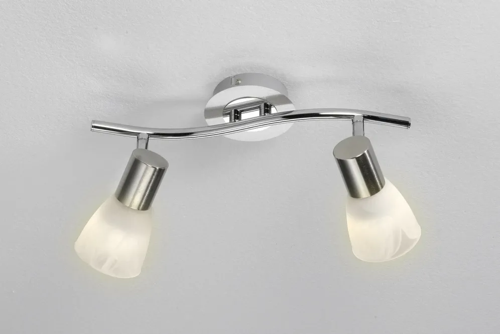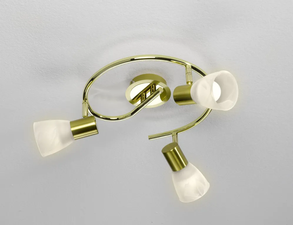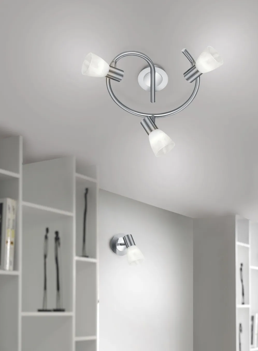Schick und elegant zeigt sich diese ansprechende Deckenleuchte kombiniert aus mattem Metall und gläsernen Lampenschirmen.230 Volt. Lieferung erfolgt mit austauschbaren LED-Leuchtmitteln der Energieeffizienzklasse F (Skala A–G). LED, 4,9 Watt, 3000 Kelvin, 470 Lumen.