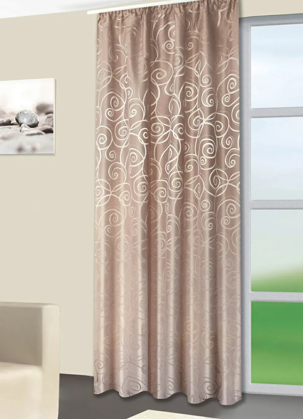 Klassischer Dekoschal mit Umschlagsaum unten. Für jedes Zuhause ist diese Fensterdekoration. Mit Universalschienenband.
