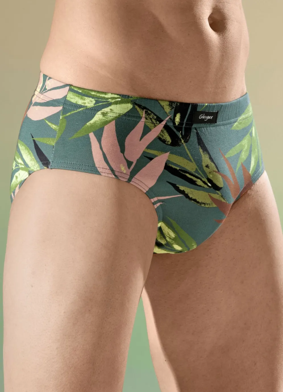 Dreierpack Slips mit Dehnbund in 2X Grün-Bunt, 1X Uni Grün und in Größe 4.