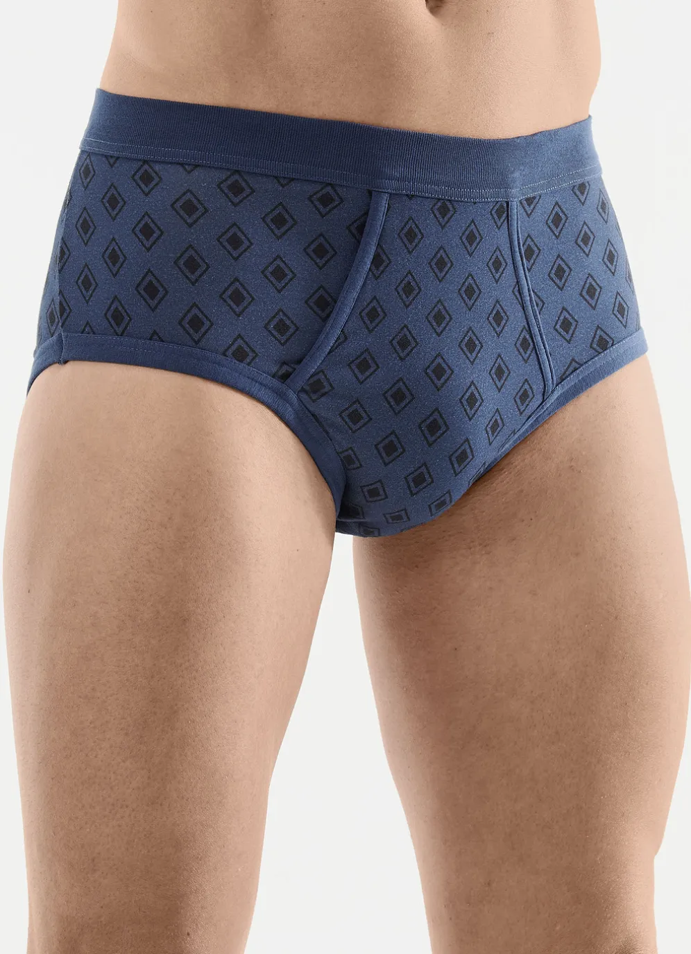 Allover dessinierter Slip in Indigoblau-Schwarz mit Softbund, Schrittverstärkung sowie paspeliertem