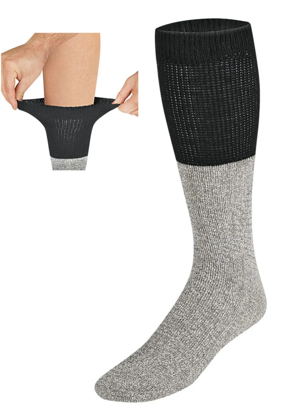 Diese wärmespeichernden Thermo-Kniestrümpfe haben sich sogar bei Temperaturen von -20 °C bewährt. Eine wohltuende Hilfe für empfindliche, schmerzende Füße