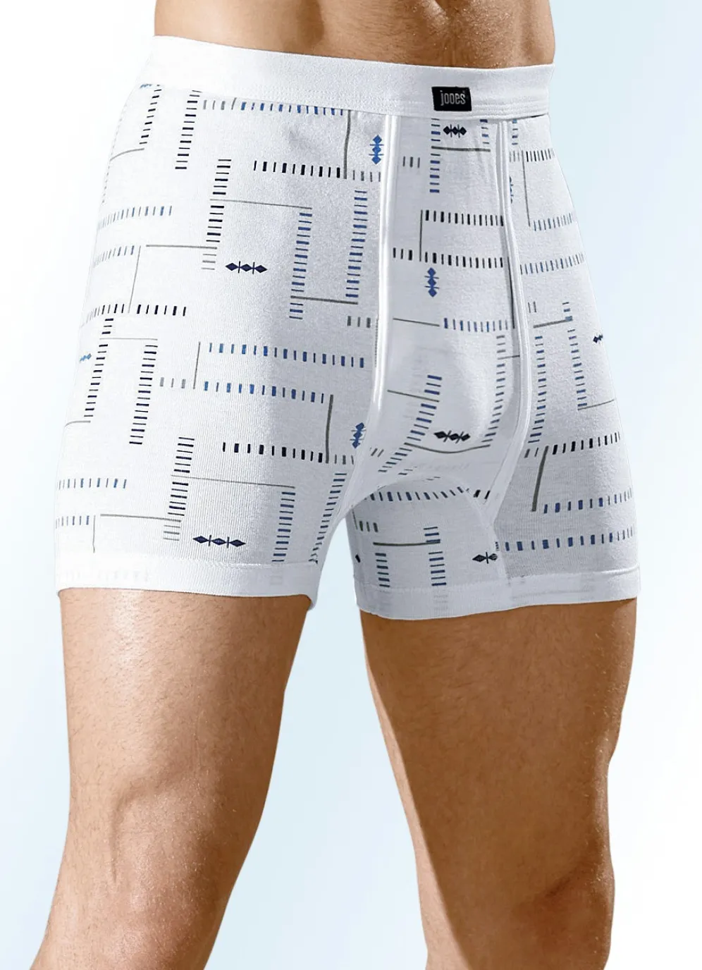 Unterhose mit Alloverdessin, Label vorne am uni Softbund, paspeliertem Eingriff sowie Schrittverstärkung.