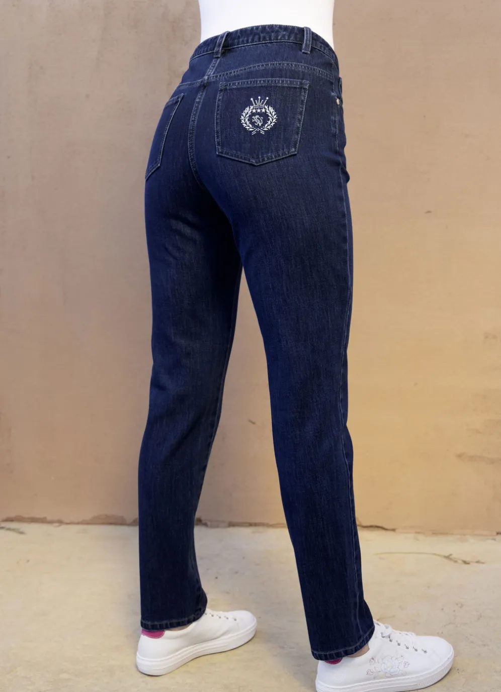 Ihr Modell PAOLA – für absolutes Wohlbefinden sorgt diese ansprechende Edeljeans in 5-Pocket-Form: elastischer Formbund, Gürtelschlaufen, Knopf- und Reißverschluss sowie schöne, kontrastfarbene Stickerei, verziert mit Strasssteinen auf einer der aufgesetzten Gesäßtaschen, Jeanssattel sowie dezente Auswascheffekte. Innenbeinlänge ca. 78 cm, Fußweite ab 31 cm.