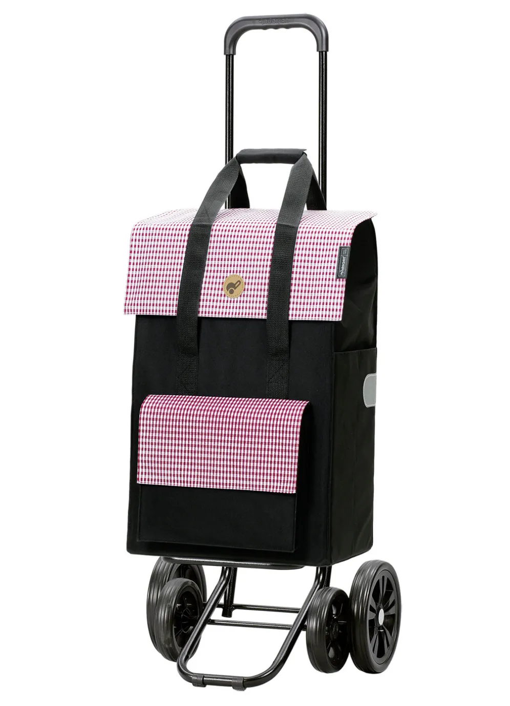 Einkaufsroller Quattro Shopper Milla. Ziehen oder Schieben, mit diesem Shopper hat man die Qual der Wahl. Eingeklappt ein ganz normaler Shopper, ausgeklappt ein 4-Rad-Transporter, der die Last fast ganz alleine trägt – zusammen mit der Höhenverstellung der perfekte Shopper für kleine und große Menschen.