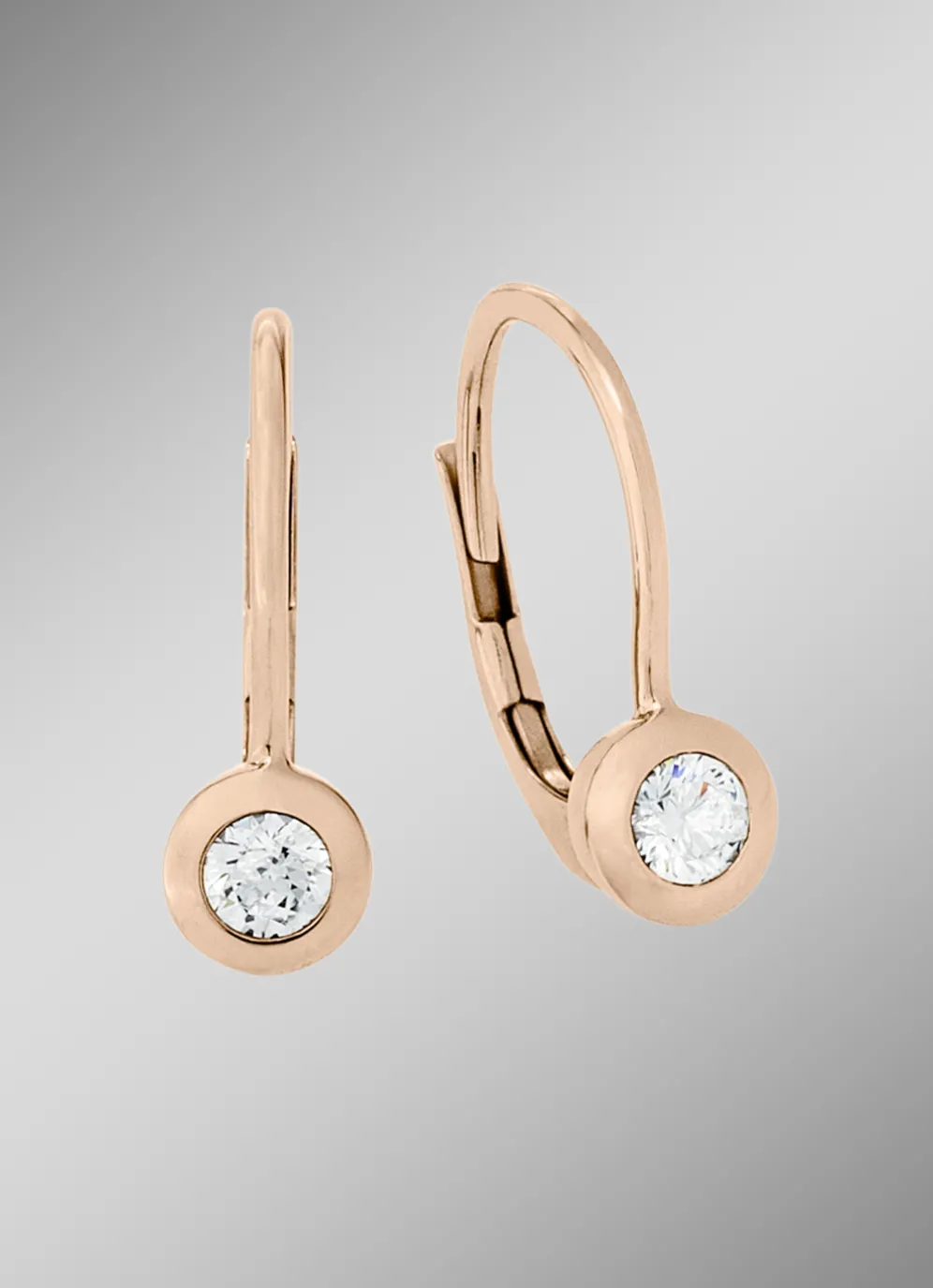 Elegante Ohrringe in Roségold mit Brillant mit zusammen 0,25 ct. und in der Legierung Roségold 585/- fein.