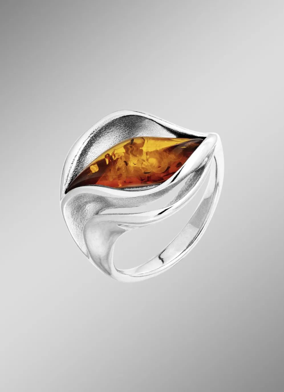 Eleganz in Perfektion: Dieser Damenring aus hochwertigem Silber 925/- fein beeindruckt durch seine raffinierte Kombination aus glänzendem und satiniertem Finish. Der echte cognacfarbene Bernstein im 16 mm breiten Ringkopf verleiht dem Schmuckstück eine warme Ausstrahlung und macht es zu einem zeitlosen Highlight.