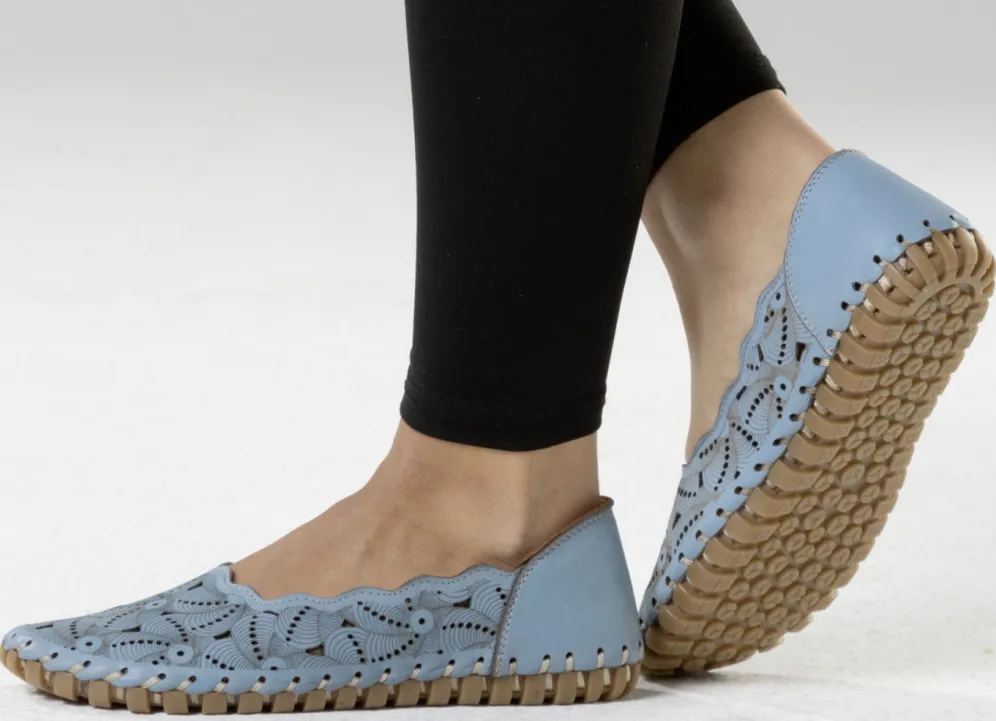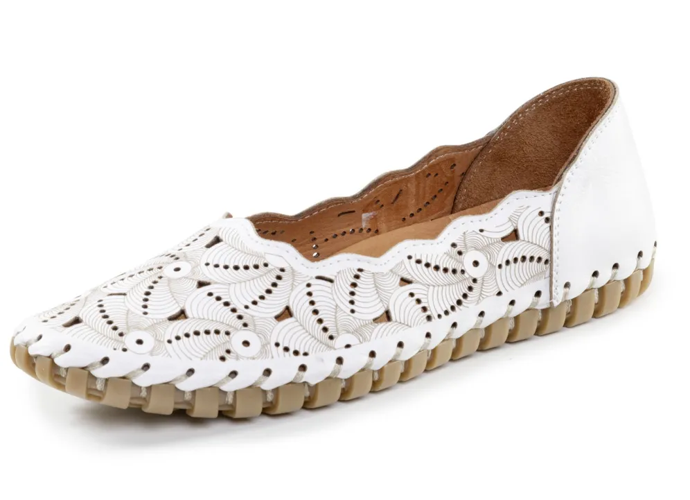 Luftig perforierter ELENA EDEN-Ballerina aus weichem Nappaleder, mit interessanter Prägung: Lederfutter, gepolsterte Lederdecksohle, superleichte TPU-Noppensohle sowie 10 mm Keilabsatz