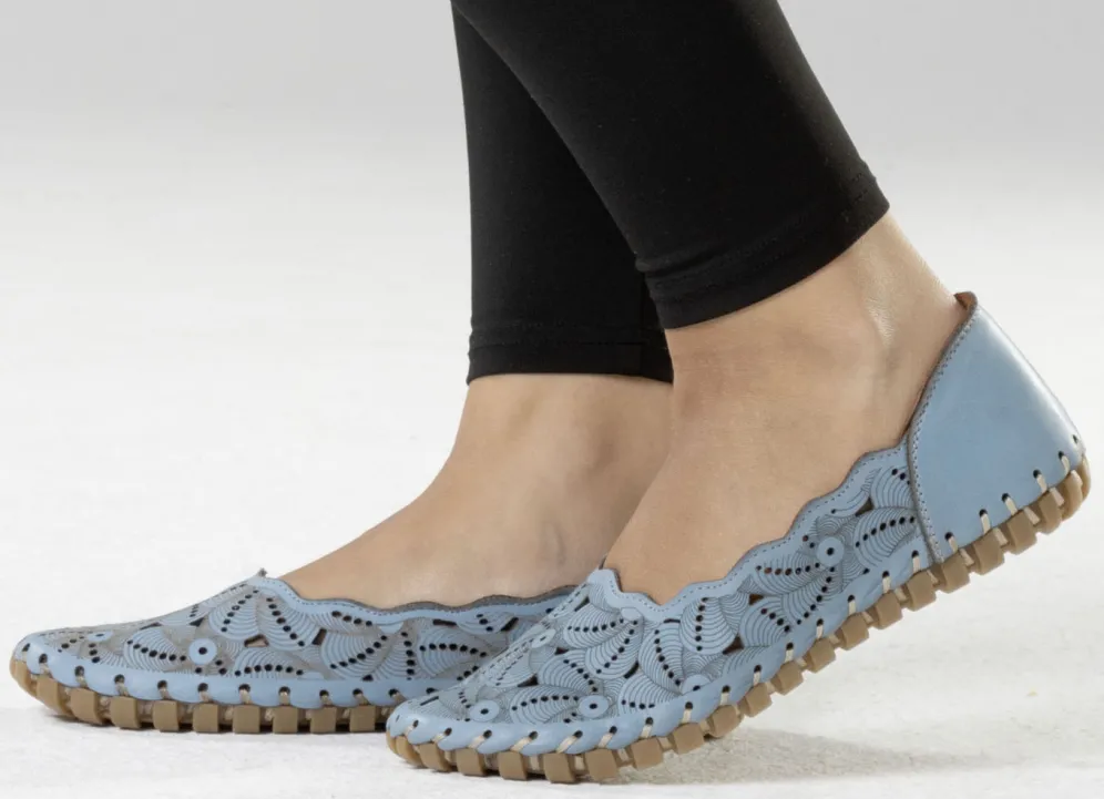 ELENA EDEN Ballerina mit interessanter Prägung in Jeans und in Größe 41.