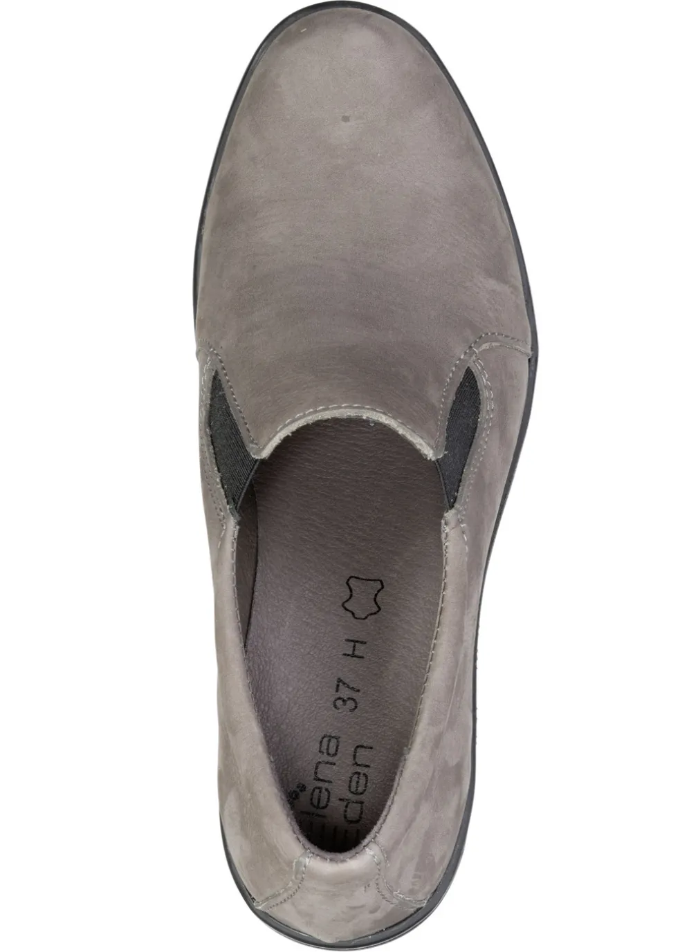 Trotteur von ELENA EDEN, aus Nappa- oder Nubukleder, mit seitlich eingesetzten Gummizügen: Weite H, Futter, herausnehmbares Lederfußbett, leichte TR-Profilsohle sowie 40 mm Blockabsatz
