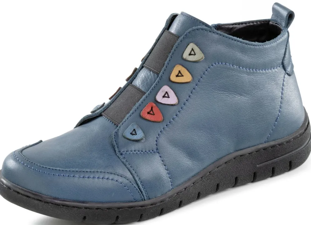 Boots von ELENA EDEN aus schattiertem Nappaleder mit Lederapplikationen und Elastikeinsätzen: Weite H, Innenreißverschluss, wärmendes Textilfutter, herausnehmbares Fußbett, leichte TR-Profilsohle, 15 mm Keilabsatz. Schafthöhe ca. 8 cm