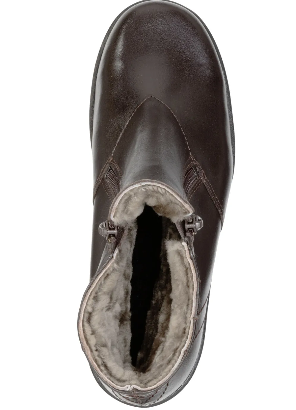 Stiefeletten von ELENA EDEN aus bestem Nappaleder, mit zwei praktischen Seitenreißverschlüssen: in Weite H, echtes, molliges Lammfellfutter, warme Wolldecksohle, leichte Synthetik-Profilsohle, 30 mm Keilabsatz. Schafthöhe ca. 15 cm