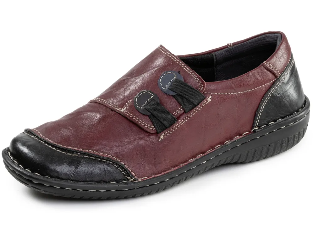 ELENA EDEN, klassische Damen-Slipper, Weite G, mit herausnehmbarem Fußbett in Burgund-Schwarz und in Größe 41.