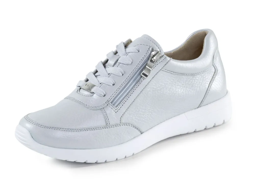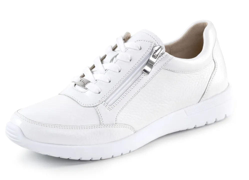 Hochwertige Sneaker von ELENA EDEN aus zart schimmerndem, genarbtem Hirsch-Nappaleder: Weite G, Schnürung und seitlicher Reißverschluss, Futter, herausnehmbares Lederfußbett, superleichte TR-Riffelsohle sowie 15 mm Keilabsatz