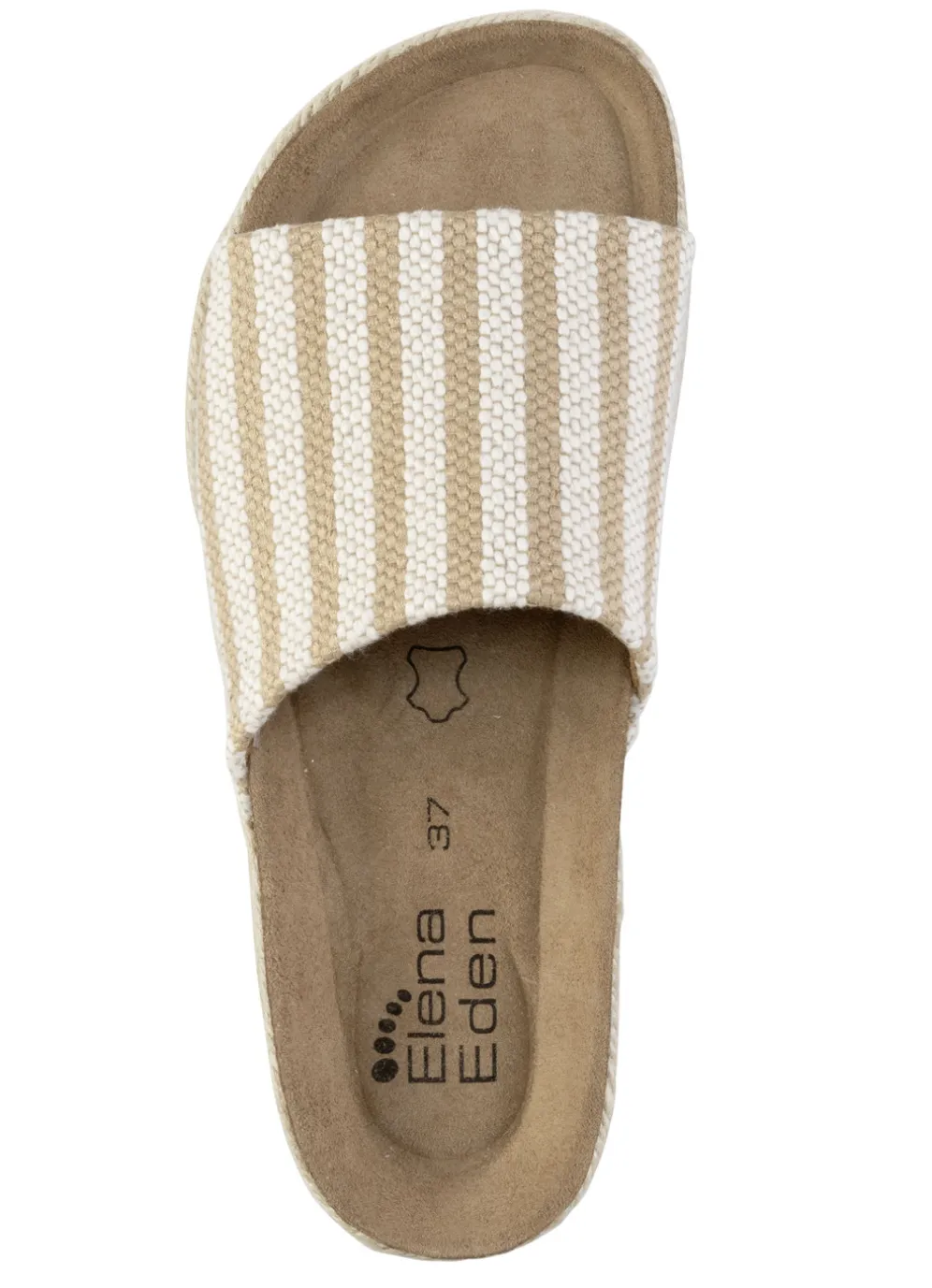 ELENA EDEN Pantolette aus grob gewebtem Textilmaterial in Beige-Weiss und in Größe 42.