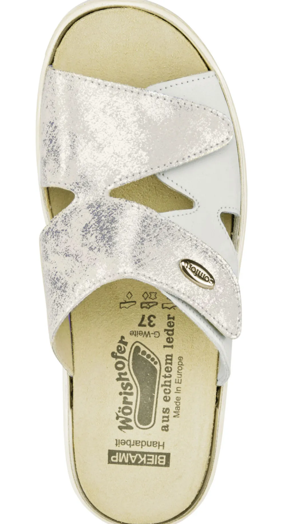 ELENA EDEN Pantolette mit Wörishofer Kork-Lederfußbett in Ecru und in Größe 40.