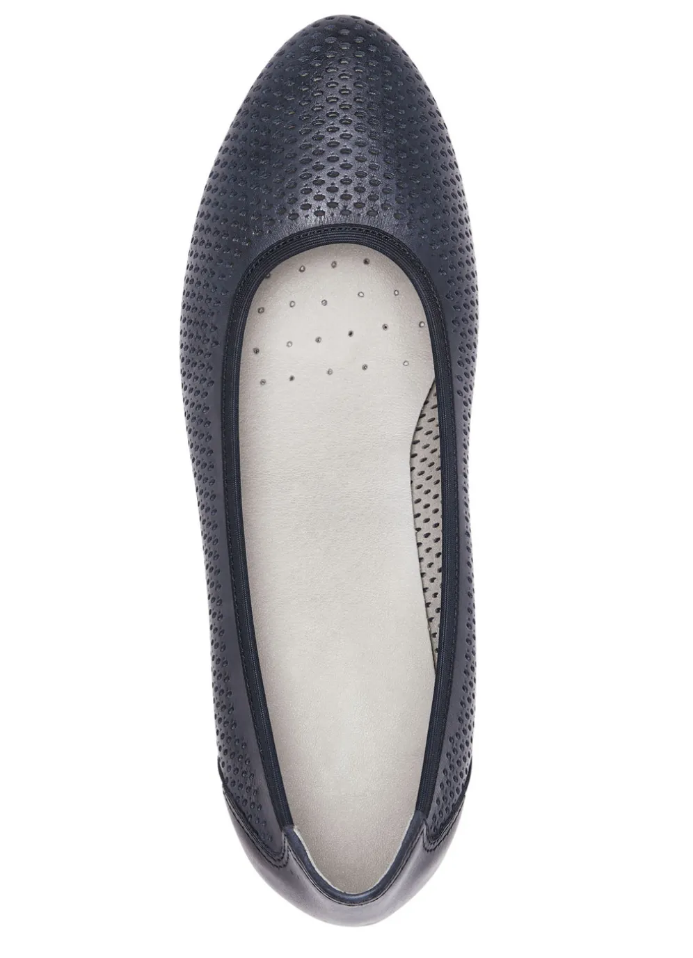 Luftig perforierter ELENA EDEN-Pumps aus Nappaleder, in Hellblau aus schimmernd geprägtem Nubukleder: in Weite H, Rundum-Gummizug, Futter, gepolsterte Lederdecksohle, TPR-Riffelsohle sowie 30 mm Blockabsatz