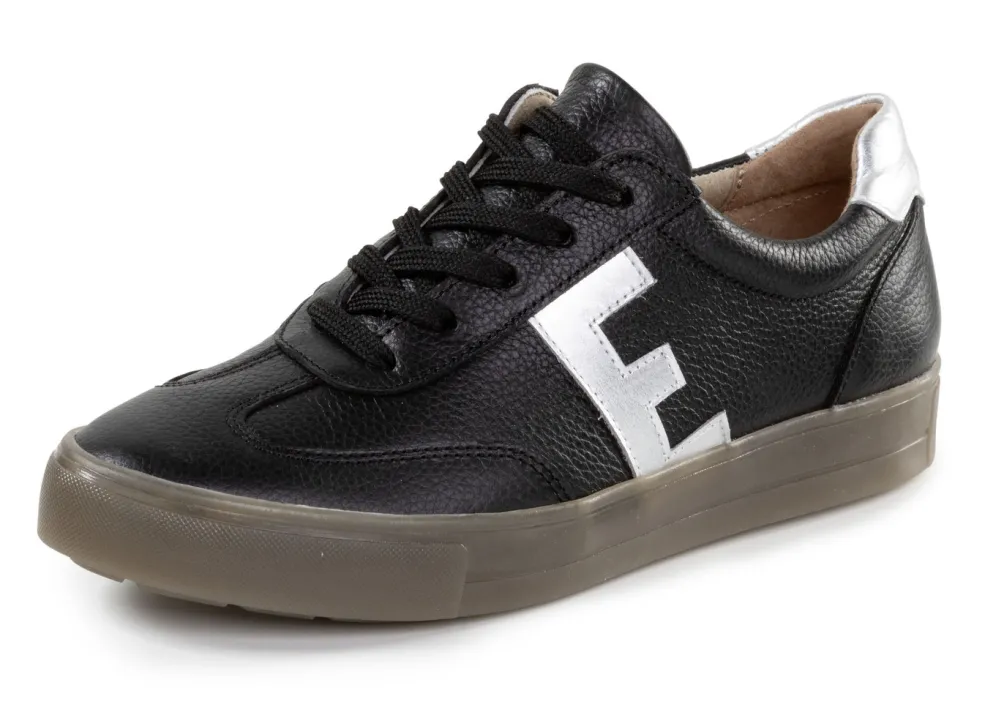 Trendiger Schnür-Sneaker von ELENA EDEN, aus genarbtem Nappaleder, in Altgold-Braun mit rassigen Leo-Besätzen: Weite H, Futter, herausnehmbares Lederfußbett, leichte TR-Profilsohle sowie 10 mm Keilabsatz