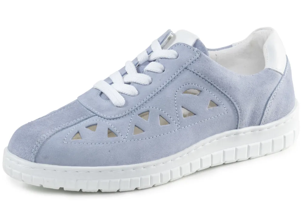 Luftig durchbrochener Elena Eden-Sneaker aus Veloursleder, in Weiß aus Nappaleder: Weite G, Schnürung, Futter, herausnehmbares Fußbett, TR-Profilsohle sowie 15 mm Keilabsatz