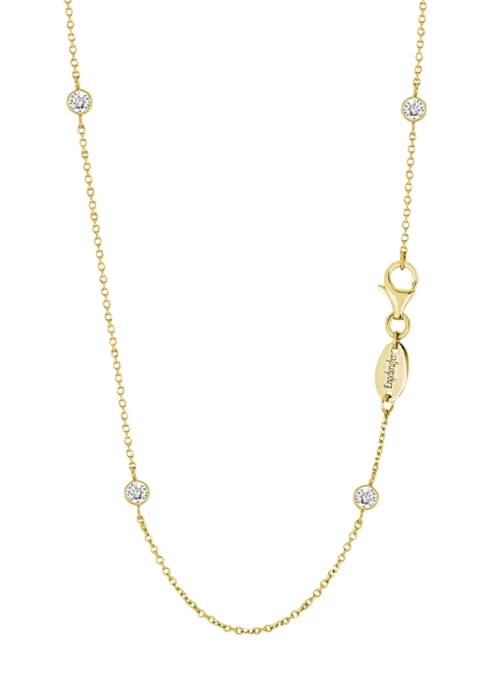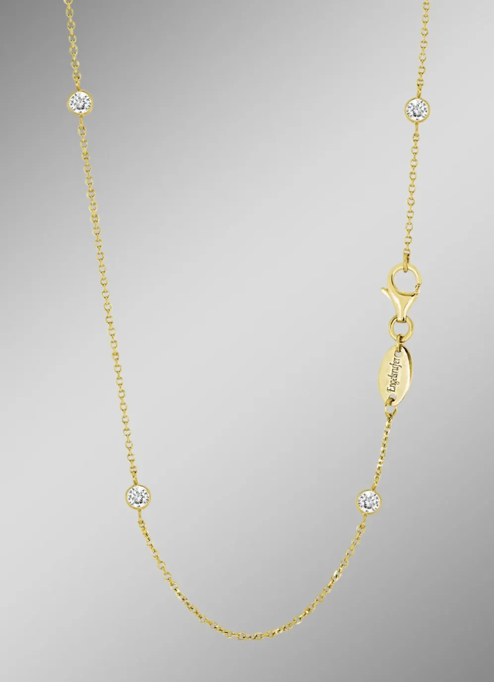 Diese 80 cm lange vergoldete Kette wird durch ihre dezent eingearbeiteten 14 weißen Zirkoniasteine gekonnt in Szene gesetzt. Die Steine tauchen die Kette in ein magisches Licht und lassen sie an Ihrem Hals elegant funkeln. Vollendet wird der edle Halsschmuck durch einen Karabinerverschluss.