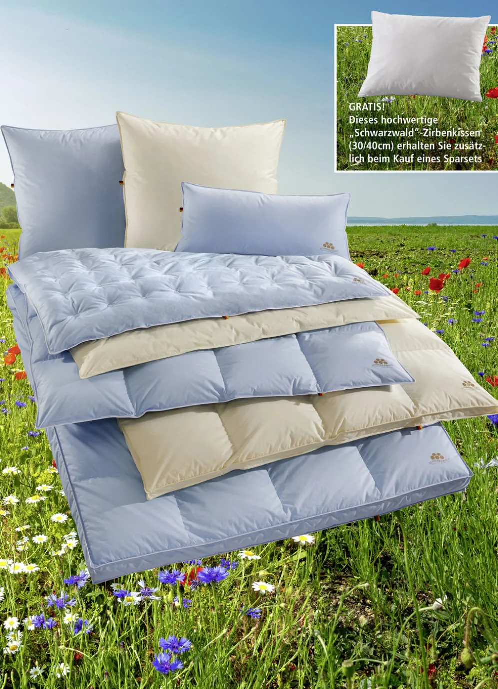 Erstklassige Daunendecken-„Sonderserie blau & creme“ aus dem Schwarzwald