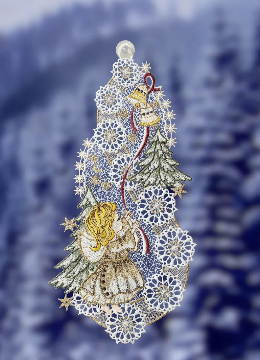 Dieses wunderschöne Fensterbild aus echter Plauener Spitze läutet die Weihnachtszeit ein. Mit Saughaken