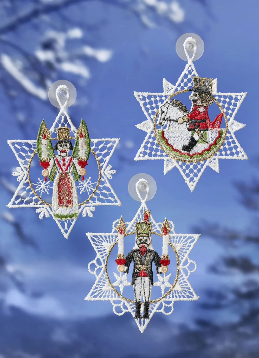 Fensterbild Erzgebirge, 3er-Set, aus echter Plauener Spitze
