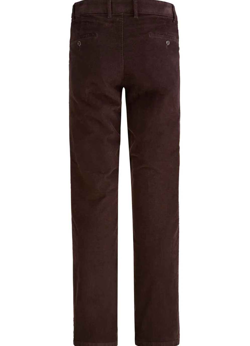 Tolle „Francesco Botti“-Cordhose mit Dehnbund, Seitentaschen, Kleingeldtasche mit Nietenzier sowie Gesäßpaspeltaschen mit Knopfverschluss.
