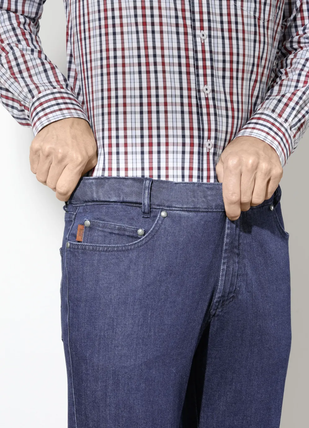 „Francesco Botti“-Jeans mit Komfortbund in 3 Farben in Jeansblau und in Größe 48.