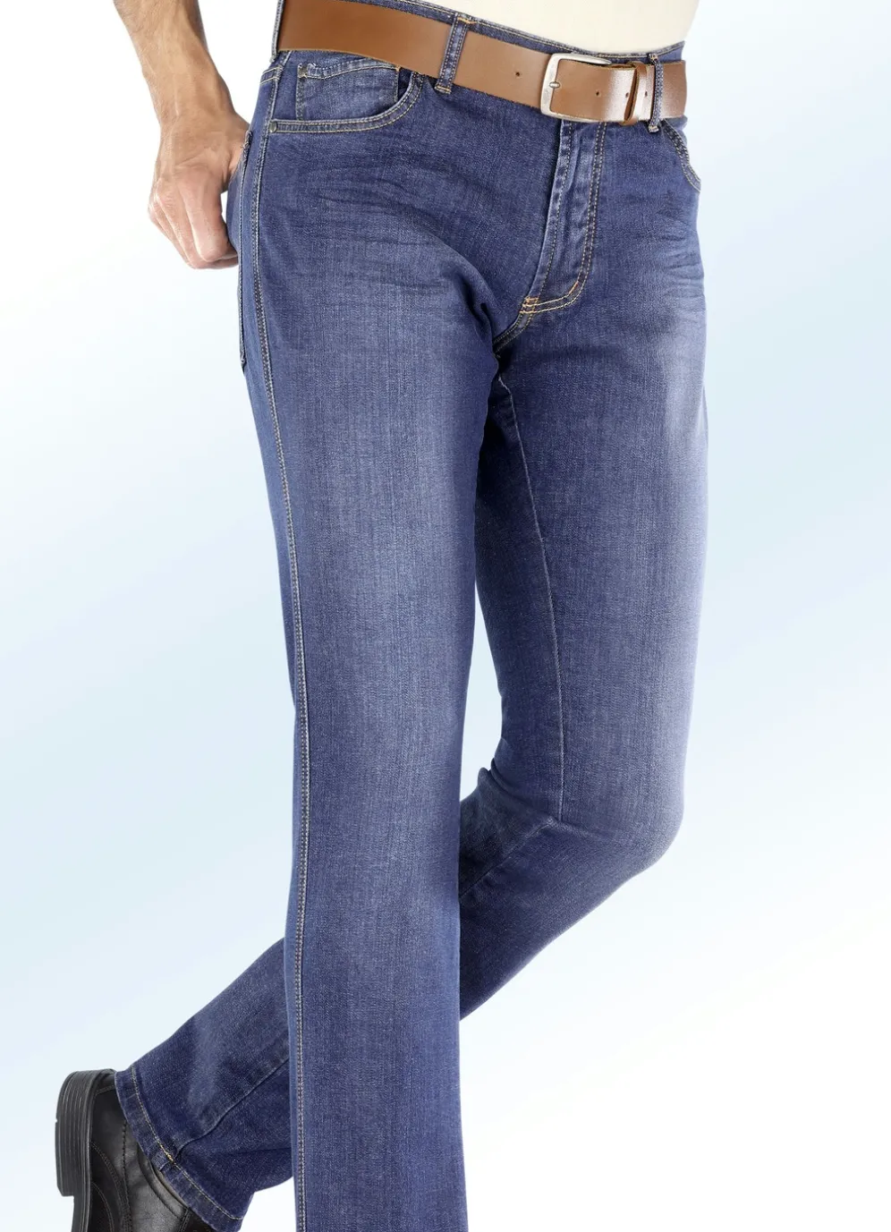 „Francesco Botti“-Unterbauch-Jeans mit Dehnbund in 3 Farben in Jeansblau und in Größe 50.