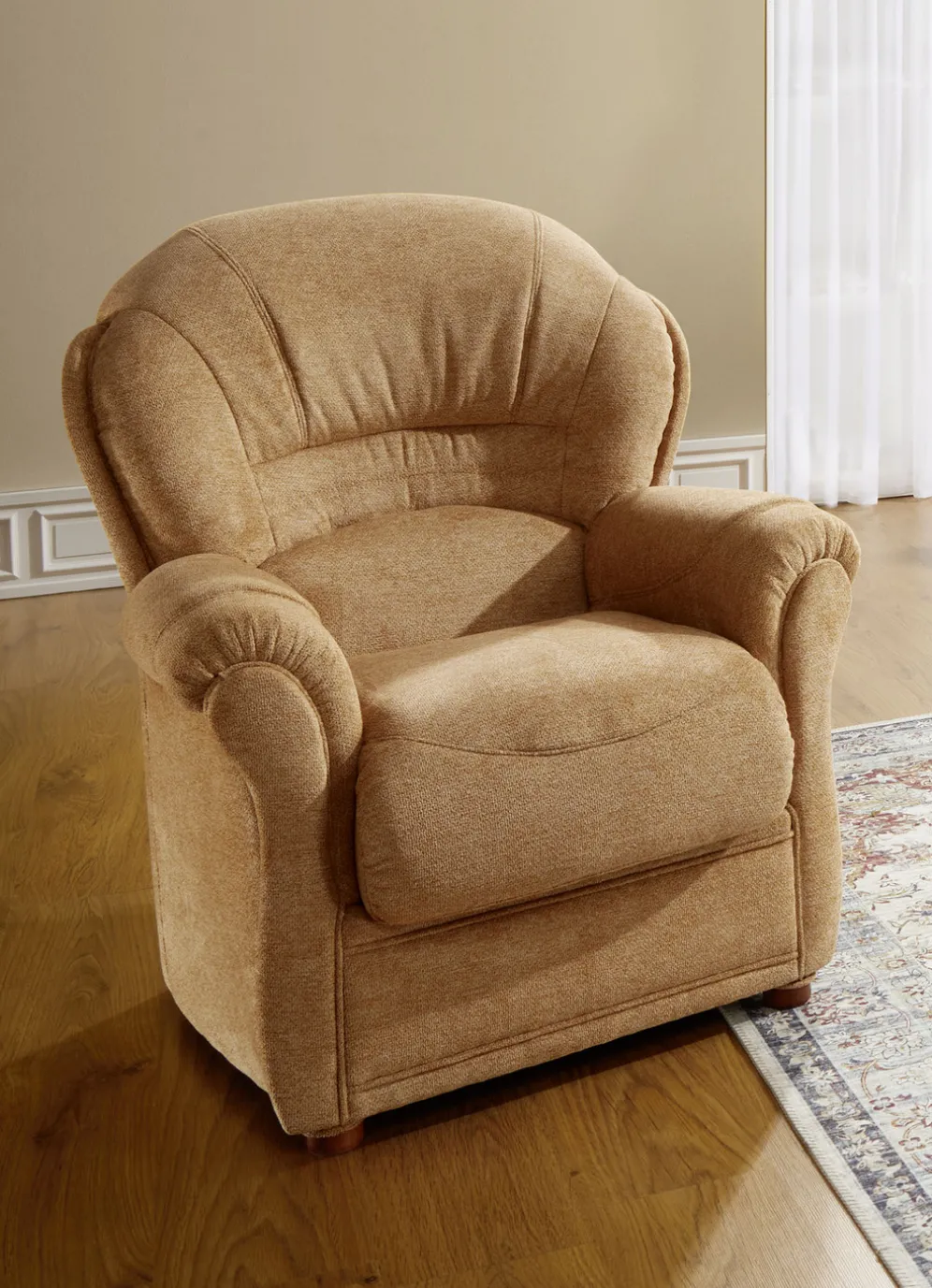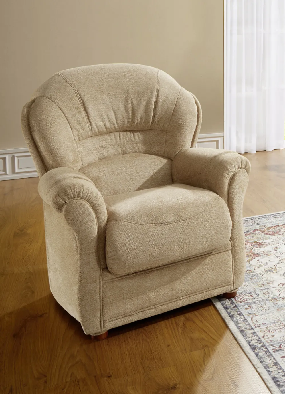 Frei im Raum aufstellbare Polstermöbel in der Ausführung Sessel und in Beige.