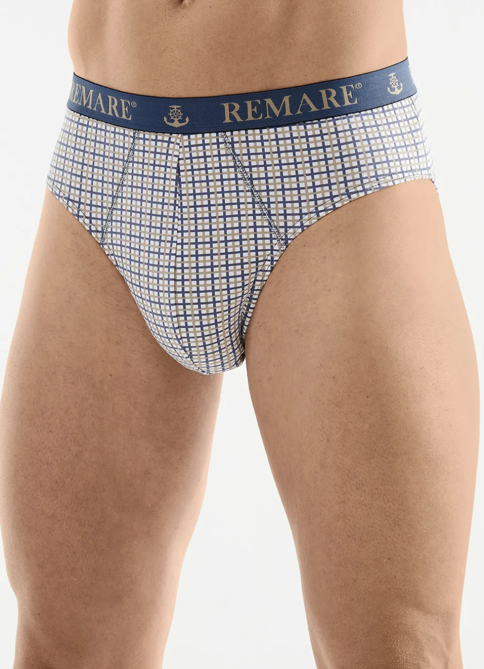 Fünferpack Slips mit Karodessin in 3X Weiss-Sand-Blau, 2X Weiss-Sand-Schwarz und in Größe 5.