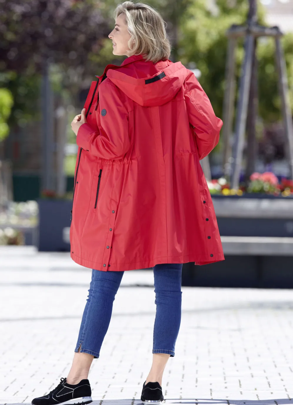 Funktions-Kurzmantel mit abnehmbarer Kapuze in Feuerrot und in Größe 36.