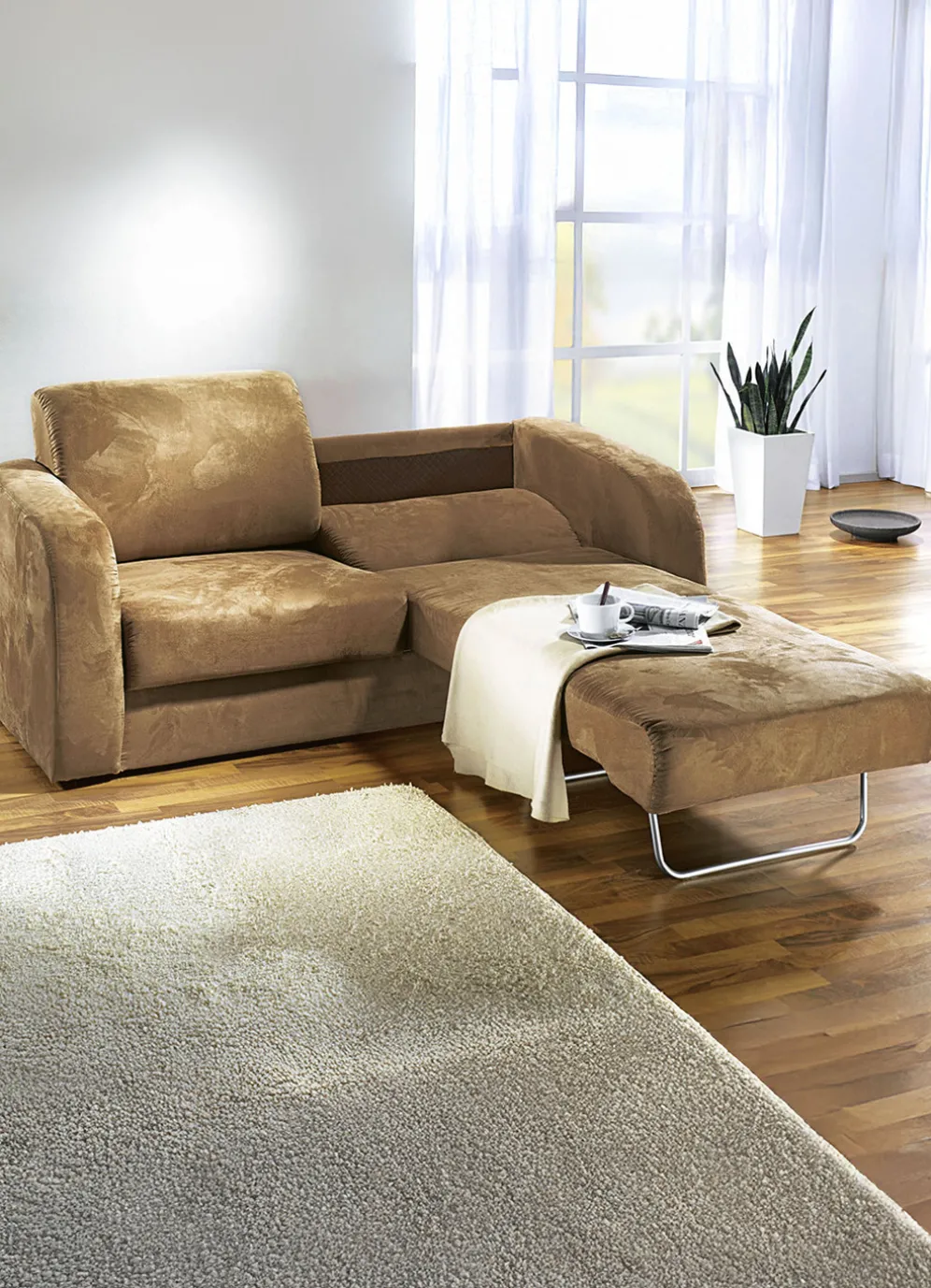 Die beiden bequemen Schlafgelegenheiten können ganz einfach und schnell auch separat ausgeklappt werden. Äußerst strapazierfähiger, pflegeleichter Microfaser-Bezugsstoff mit Fleckschutz-Ausrüstung in 2 Qualitäten: