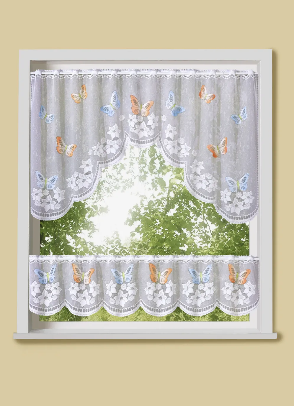 Gardinen-Set, 2-teilig in Weiss-Bunt.