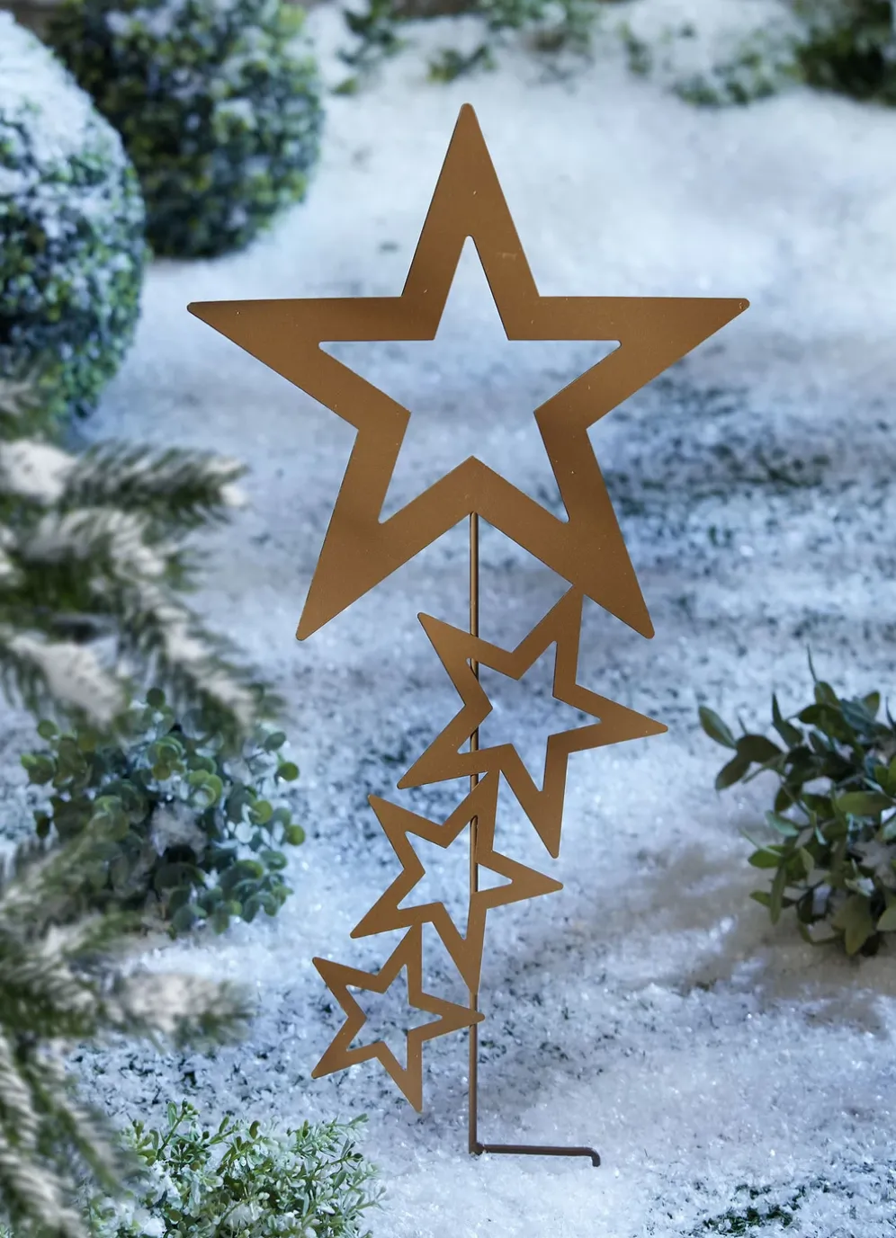 Gartenstecker Sterne aus rostfarbenem Metall in Rost.