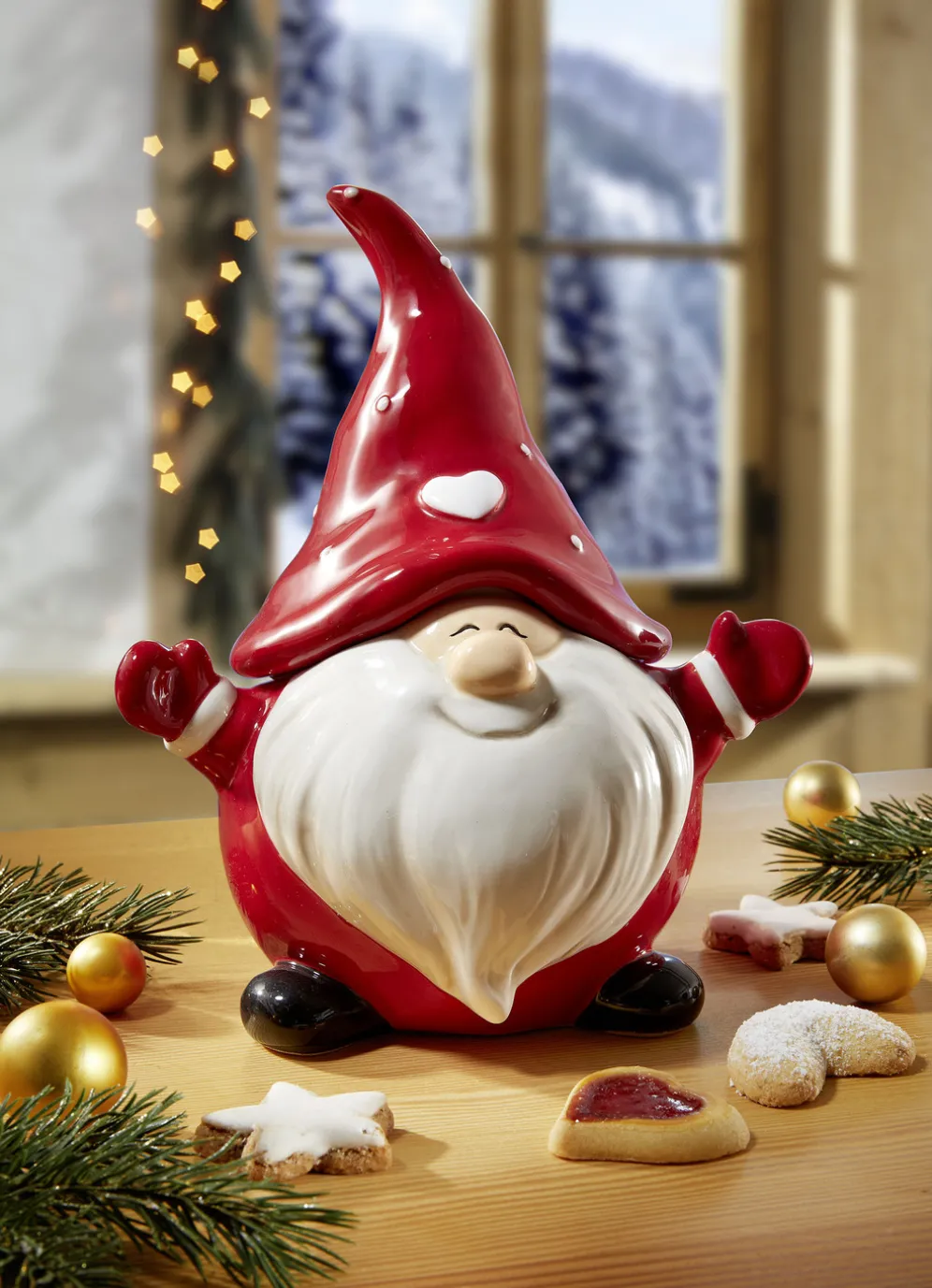 Gebäckdose in Wichtel-Form in Rot-Weiss.