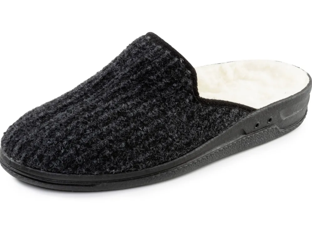 Gefütterte Herren-Hausschuhe, mit Schurwolle in Schwarz und in Größe 43.