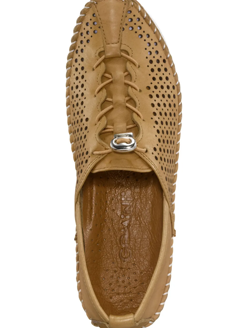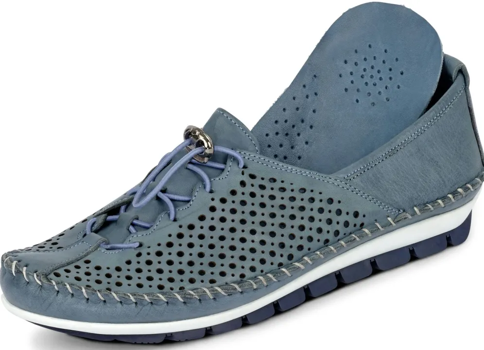 Perforierte Slipper aus schattiertem Rind-Nappaleder, in Mokassin-Machart: Weite G, elastisches Schnellschnürsystem mit Stopper, herausnehmbares Lederfußbett, leichte TR-Profilsohle, 15 mm Keilabsatz